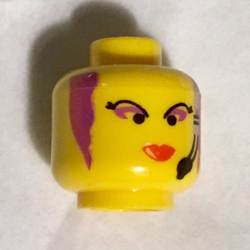 - Nom : Minifig Head Female with Red Lips, Purple Hair and Headset Print [Blocked Open Stud]