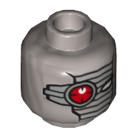 - Nom : Minifig Head Alien with Mechanical Right Eye Red, Silver Face Mask Print [Hollow Stud]