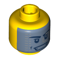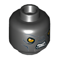 - Nom : Minifig Head Dual Sided Stern Black Eyebrows, Mouth Lines / Dark Bluish Gray Visor with Silver Squares, Open Smile with Teeth Print [Hollow Stud]