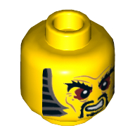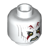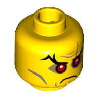 - Nom : Minifig Head Alien with Red Sunken Eyes, Black Eyebrows, Scar over Left Eye, Cheek Lines and Wrinkles Print [Hollow Stud]