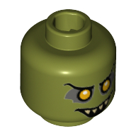 - Nom : Minifig Head Alien Chima Crocodile with Dark Green Rimmed Eyes, Teeth and Yellowish Green Lower Jaw Print [Hollow Stud]