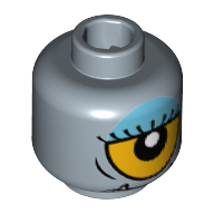 - Nom : Minifig Head Dual Sided Alien with Lower Fangs, Eyelashes, Single Orange Eye Open / Eye Half Closed with Blue Eye Shadow Print [Hollow Stud]