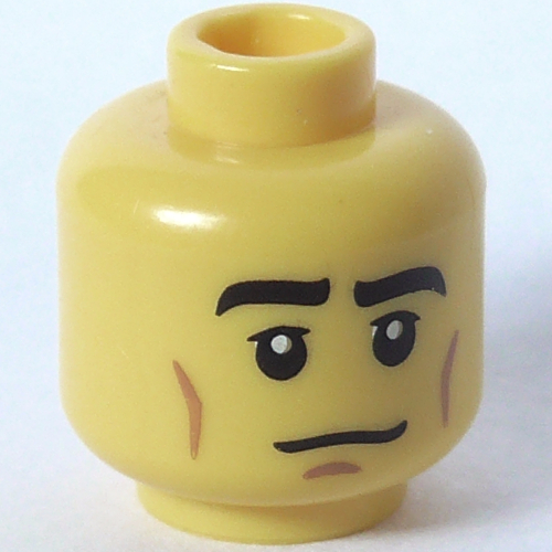 - Nom : Minifig Head Male Stern Black Eyebrows, Crow's Feet, Cheek Lines, Chin Dimple Print [Hollow Stud]