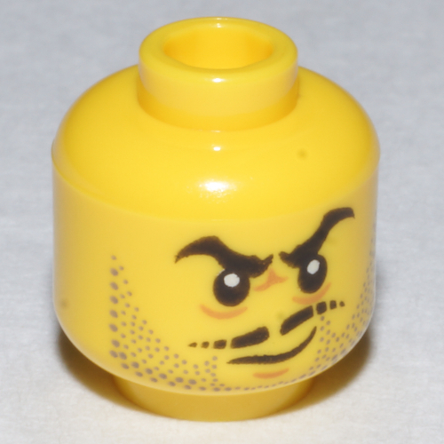 - Nom : Minifig Head Beard Stubble, Dark Tan Eyebrows, Crow's Feet, Lopsided Smile Print [Hollow Stud]