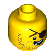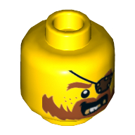 - Nom : Minifig Head Beard Brown Stubble, Eyepatch, Open Grin, Missing Teeth Print [Hollow Stud]