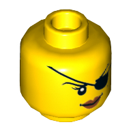 - Nom : Minifig Head Dual Sided Female with Eyepatch, Smile / Angry Mouth with Teeth Print [Hollow Stud]