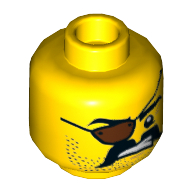 - Nom : Minifig Head Beard Black Stubble and Moustache, Eyepatch, Crow's Feet, Clenched Teeth Print [Hollow Stud]