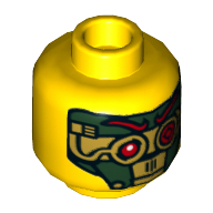 - Nom : Minifig Head Dual Sided Female Black Eyebrows, Eyelashes, Brown Lips / Green and Gold Robot, Red Eyes and Eyebrows Print [Hollow Stud]