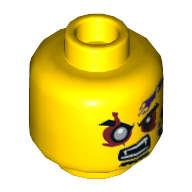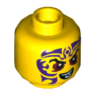 - Nom : Minifig Head Black Eyebrows, Red Eyes, Purple Tattoo, Evil Smile Print [Hollow Stud]