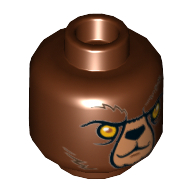 - Nom : Minifig Head Dual Sided Alien Chima Bear with Black Nose, Yellow Eyes, Dark Brown Fur, Stern / Raised Eyebrow Print (Bulkar) [Hollow Stud]