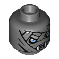 - Nom : Minifig Head Dual Sided Alien Chima Mummy with Wrapping and Light Blue Eyes, Fangs / No Fangs Print [Hollow Stud]