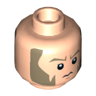 - Nom : Minifig Head Dual Sided Dark Tan Eyebrows and Large Sideburns, Determined / Sad Print (SW Agent Kallus) [Hollow Stud]
