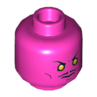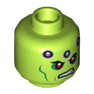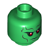 - Nom : Minifig Head Alien with Red Eyes, Green Cheek Lines, Dark Pink Circles and Scowl Print (Brainiac) [Hollow Stud]