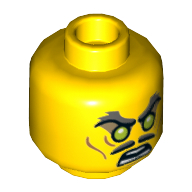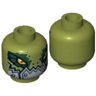 - Nom : Minifig Head Alien Chima Crocodile with Dark Green Rimmed Eyes and Metallic Silver Plates with Rivets Lower Jaw Print [Hollow Stud]