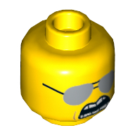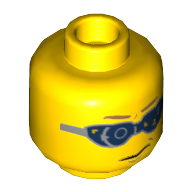- Nom : Minifig Head Glasses with Gold, Dark Bluish Gray and Silver Goggles Print (Hydra Henchman) [Hollow Stud]