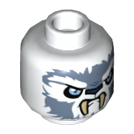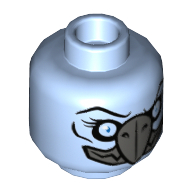 - Nom : Minifig Head Alien Chima Vulture Female with Dark Bluish Gray Beak and Mouth and Light Blue Eyes Print (Vultrix) [Hollow Stud]