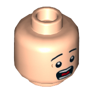 - Nom : Minifig Head Dual Sided Brown Unibrow and Cheek Lines, White Pupils, Mouth Open Smiling / Small Frown Print (President Business) [Hollow Stud]