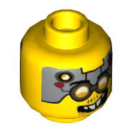 - Nom : Minifig Head Dual Sided Glasses with Silver Goggles, Metal Plates with Circuitry on Forehead, Smiling / Angry Print (Drillex) [Hollow Stud]