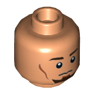 - Nom : Minifig Head Dark Orange Eyebrows, Scar over Right Eye, Scowl Print [Hollow Stud]