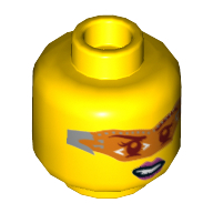 - Nom : Minifig Head Dual Sided Black Eye Mask, Open Mouth / Red Scuba Mask with Orange Goggles Print (Robin) [Hollow Stud]