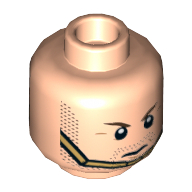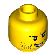 - Nom : Minifig Head Beard Stubble, Black Eyebrows, Scar on Right Eyebrow, Open Mouth with Teeth Print [Hollow Stud]