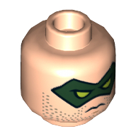 - Nom : Minifig Head Dual Sided Male Mask Dark Green with Eyeholes, Stubble Beard, Serious / Clenched Teeth Print (Green Arrow) [Hollow Stud]