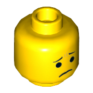 - Nom : Minifig Head Dual Sided Open Lopsided Smile / Pinched Eyebrowns and Frown Print (Emmet) [Hollow Stud]