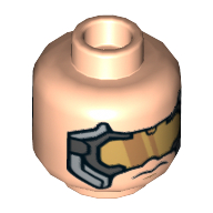 - Nom : Minifig Head Dual Sided Brown Eyebrows, Stubble Beard, Gold Chin Strap, Serious / Clenched Teeth Print (Hawkman) [Hollow Stud]