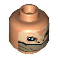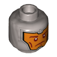 - Nom : Minifig Head Dual Sided Balaclava, Orange Face, Dark Red Eyebrows and Cheek Lines, Determined / Raised Eyebrow print - Stud Recessed