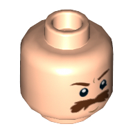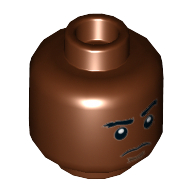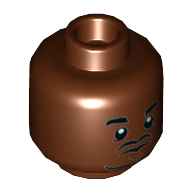 - Nom : Minifig Head Dual Sided Dark Orange Eyebrows and Goatee, Freckles, Scars, Determined / Smile with Teeth, Eyes Closed Print [Hollow Stud]
