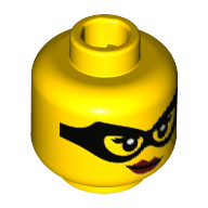 - Nom : Minifig, Head Female Black Eye Mask, Beauty Mark, Red Lips with Smirk Print - Stud Recessed