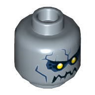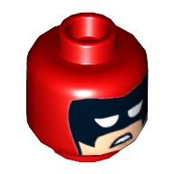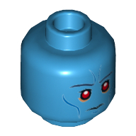 - Nom : Minifig Head with Hollow Stud and Dual Side Alien Print - Red Eyes, Dark Blue Eyebrows and Blue Cheek Lines