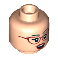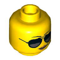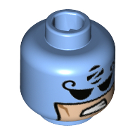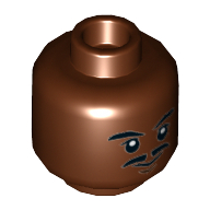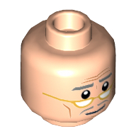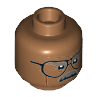 - Nom : Minifig Head with Hollow Stud - Forehead and Cheek Lines - Dark Bluish Gray Eyebrows and Mustache - Gold Eyeglasses below Eyes Print - (Recessed Solid Stud)