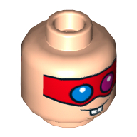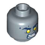 - Nom : Minifig Head with Hollow Stud - Reddish Brown Eyebrows - Medium Dark Flesh Scar on Right Side and White Bandage on Left Side - Open Mouth Scowl Print - Kai
