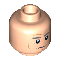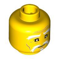 - Nom : Minifig Head with Hollow Stud - White and Gray Eyebrows and Goatee - Black Eyelashes and Thin Mouth - Medium Dark Flesh Wrinkles - Concerned Expression Print (Sensei Wu)