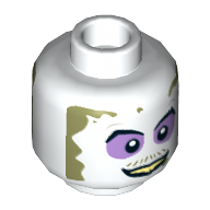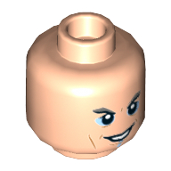 - Nom : Minifig Head with Hollow Stud - Black Straight Eyebrows - Dark Azure Eyes with Gray Outline - Wide Open Mouth Grin - White Hair continuing on Back Print