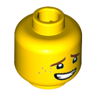 - Nom : Minifig Head with Hollow Stud - Dark Brown Eyebrows - Dark Orange Freckles - Open Mouth Crooked Smile Print