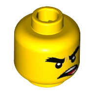 - Nom : Minifig Head with Hollow Stud - Black Bushy Scowling Eyebrows and Crooked Open Mouth with Teeth and Red Tongue Print