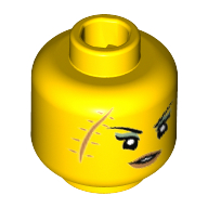 - Nom : Minifig Head with Hollow Stud - Female Black Thin Eyebrows - Large Medium Dark Flesh Scar with Stitches - Slightly Open Mouth with Medium Dark Flesh Lips Print