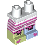 - Nom : Legs and White Hips - Dark Pink Striped Leggings - Right Yellowish Green Boot and Left Bright Light Blue Boot - Both Boots with Dark Pink Ties and Hearts Print