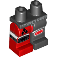- Nom : Legs and Hip Assembly with Prints - Black Left Leg with Black Shorts and Red Knee Pad - Red Right Leg with 3 Black Diamonds on Shorts and Black Knee Pad - Black Hips with a band of White Kryptomites.