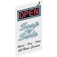 - Nom : Glass for Window 1 x 4 x 6 with 'OPEN', 'Soap 'n' Suds' and 'Wash - Dry - Fold 24 Hour Service' print