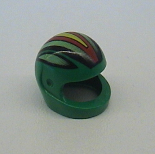 - Nom : Minifig Helmet Standard with Racing Stripes, Black/Lime/Red/Yellow Print