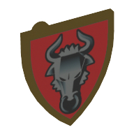 - Nom : Minifig Shield Triangular with Dark Red and Silver & Black Adric Bull Print