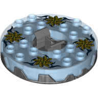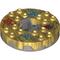 - Nom : Turntable 6 x 6 Round Pearl Dark Gray Base Serrated with Pearl Gold Top with Blue, Red and Silver Print (Ninjago Spinner)