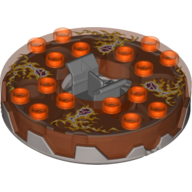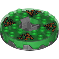 - Nom : Turntable 6 x 6 Round Pearl Dark Gray Base Serrated with Trans-Green Top with Hollow Studs and Black and Orange Print