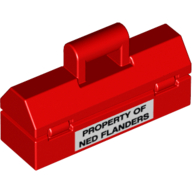 - Nom : Minifig Utensil Toolbox with Black 'PROPERTY OF NED FLANDERS' on White Rectangle Print