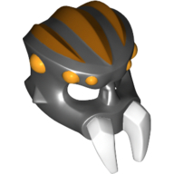 - Nom : Minifig Mask - Chima Spider with 6 Orange Eye Spots, Dark Tan Stripes and White Fangs Print