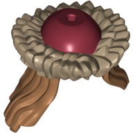 - Nom : Minifig Hair with Hat, Long Flap with Dark Red Cap and Dark Tan Fur Brim Print