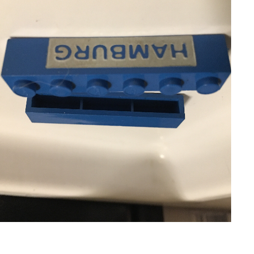 - Nom : Brick 1 x 6 with Blue in White 'HAMBURG' Print (Set 113)